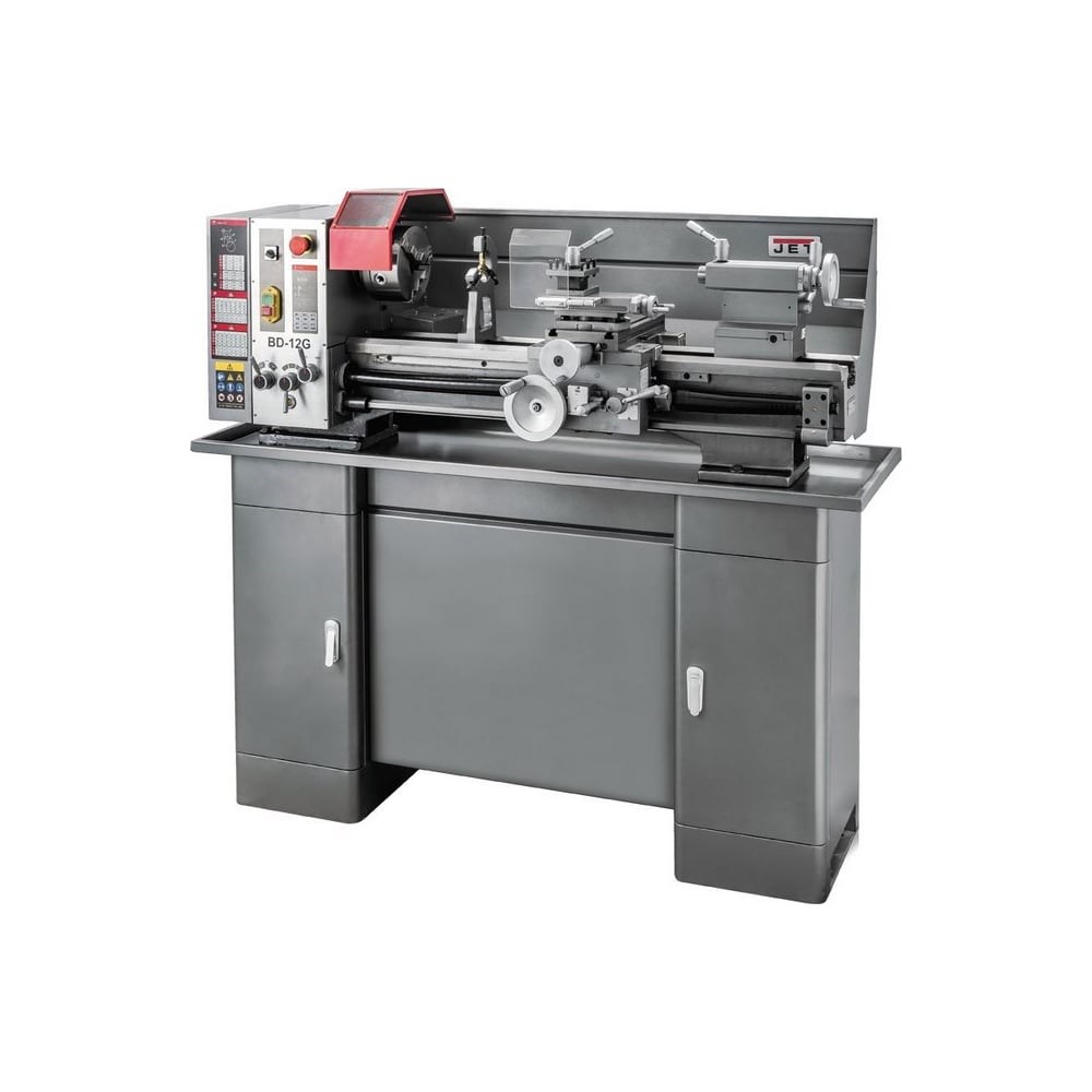 Токарный станок по металлу с тумбой JET BD-12G 220В 50000913M применяется для нарезания дюймовой и метрических резьб. Асинхронный двигатель обеспечивает высокую производительность. 6 ступеней регулировки скорости вращения шпинделя позволяют выбрать наиболее оптимальный режим обработки заготовки для конкретного случая. Продольный и поперечный ход суппорта осуществляются автоматическим путем. Станина из чугуна устойчива к разрушению, закалена и отшлифована.