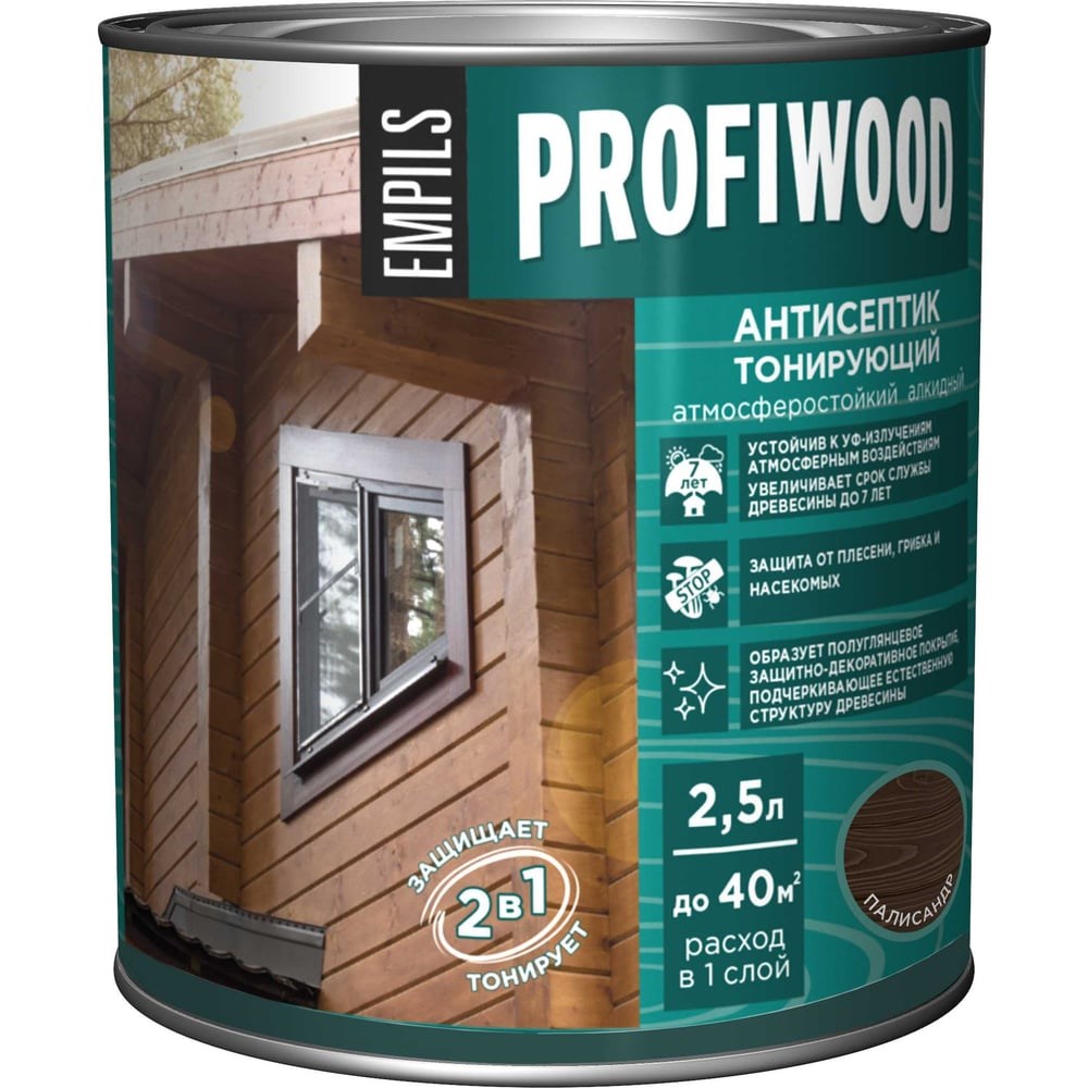 Алкидный антисептик PROFIWOOD (тонирующий; атмосферостойкий; палисандр; 2.5 л; 2.1 кг) 63862 предназначен для декоративной отделки и защиты деревянных поверхностей (фасадов домов, дверей, окон, заборов), эксплуатируемых в атмосферных условиях и внутри помещений, предохраняет от поверхностных плесневых, деревоокрашивающих, дереворазрушающих грибков и насекомых-древоточцев. Расход зависит от способа нанесения, впитывающей способности, типа, состояния и структуры древесины. Ориентировочный расход антисептика на однослойное покрытие составляет: пиленая древесина – 1 литр на поверхность площадью от 5 до 8 кв.м строганая древесина – 1 литр на поверхность площадью от 10 до 14 кв.м