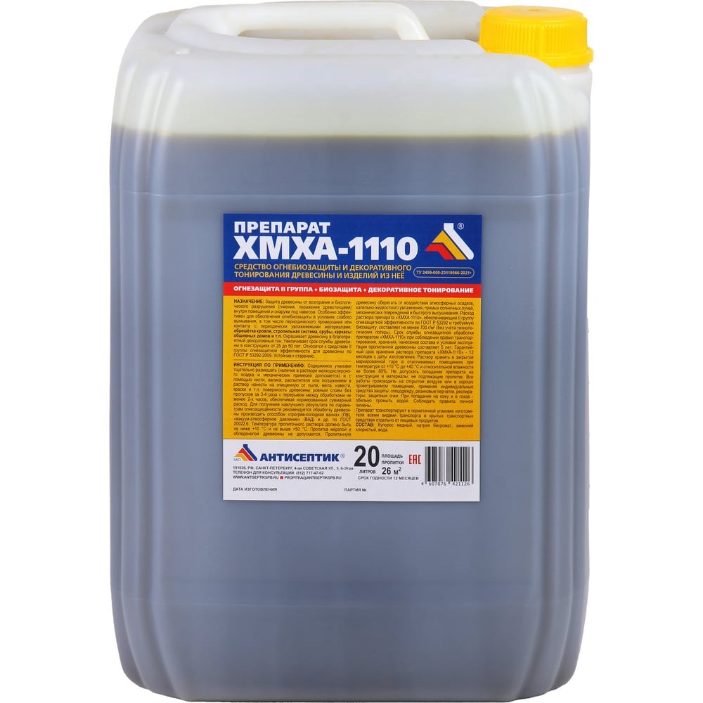 Пропитка ЗАО "Антисептик" ХМХА-1110 20 литров 00-00003773 защищает от воздействия огня (II группы огнезащитной эффективности для древесины по ГОСТ Р 53292-2009), биологического разрушения, а также окрашивает древесину в благоприятный декоративный тон (коричневый). Препарат наносится на обрешётку кровли, стропильную систему, срубы, каркасы обшивных домов.
