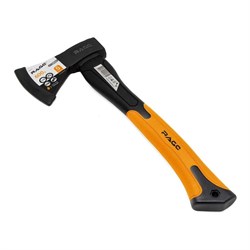 Топор 600г с фиберглассовой рукоятью RAGE by VIRAТопор служит рубки дров, первичной обработки древесины. Рабочая часть выполнена из инструментальной стали CS45. Твердость бойка топора: 55-60 HRC. Закалка острия от 4 до 10 мм. Топор заточен под углом 40 градусов – это позволяет достаточно углублять лезвие в древесину, при этом дольше поддерживать его острым. Ударная группа RAGE by VIRA соответствует немецкому стандарту DIN. Рабочая часть топора плотно соединена с рукояткой и ощущается как её продолжение. Эти части практически невозможно разделить. Топорище из фибергласса прочное, но легкое. При использовании многократной намотки, из этого сырья изготавливают парусные мачты, автомобильные глушители и велосипедные рамы. Фибергласс не рассыхается, не гниет, не реагирует на воздействие кислот. Ещё одно преимущество материала – его способность гасить передающиеся удары, а значит вы меньше отобьете руки, работая топором. Покрытие из термопластичной резины TPR мягкое наощупь и не дает рукоятке скользить в ладони. Вся ударная группа компании RAGE by VIRA соответствует требованиями немецкого промышленного стандарта качества Geprüfte Sicherheit (GS) и британского института стандартов BSI.Характеристики:Длина топора (мм): 380Длина головки (мм): 150Вес головки (г): 600Общий вес (г): 970Материал головки: инструментальная сталь CS45Угол заточки (°): 40Твердость (HRC): 55-60Материал рукоятки: фибергласс, PP (полипропилен), термопластичная резина (TPR)