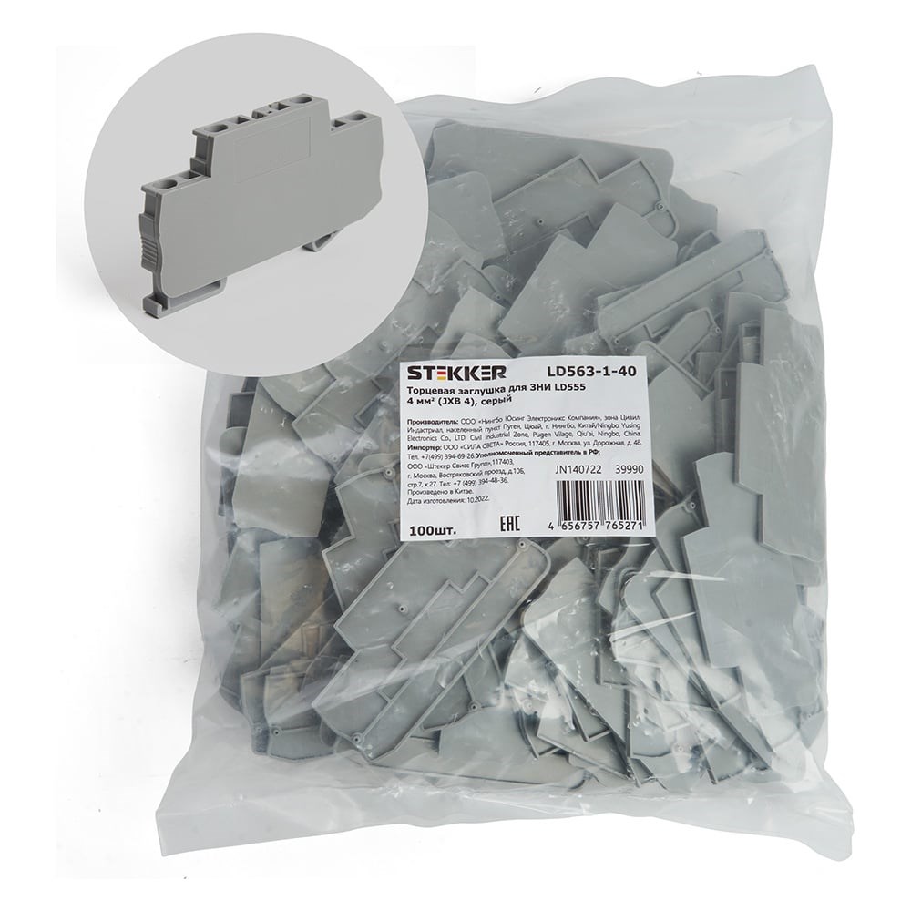 Торцевая заглушка для ЗНИ LD555 STEKKER 4 мм2 (JXB 4), серый LD563-1-40 39990