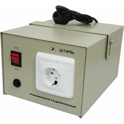 Трансформатор Штиль U вход 230 220, в корпусе ОСЗМ Р 220/220-1,0-50 представляет собой однофазный разделительный трансформатор в корпусе, предназначенный для электропитания приборов, инструментов, аппаратуры и устройств переменным током напряжением 220 (230) В, от стандартной электросети с напряжением 220 (230) В, при обеспечении гальванической развязки цепей питания нагрузки от электросети. Первичная и вторичные обмотки разделительного трансформатора не имеют гальванической связи и разделены экранирующей обмоткой, поэтому разделительный трансформатор выполняет также функцию фильтра импульсных помех, возникающих в питающей сети. Основным назначением изделия является повышение уровня безопасности работающих электрических приборов, соответственно - снижение уровня электротравматизма. Изделие может работать совместно со стабилизаторами напряжения и источниками бесперебойного питания переменного тока. Изделие состоит из следующих основных частей: металлический корпус, трансформатора разделительного на тороидальном сердечнике, выключатель «СЕТЬ», автомат защиты (для защиты изделия и подключённой к нему нагрузки от превышения потребляемого тока), сетевой шнур с евровилкой.