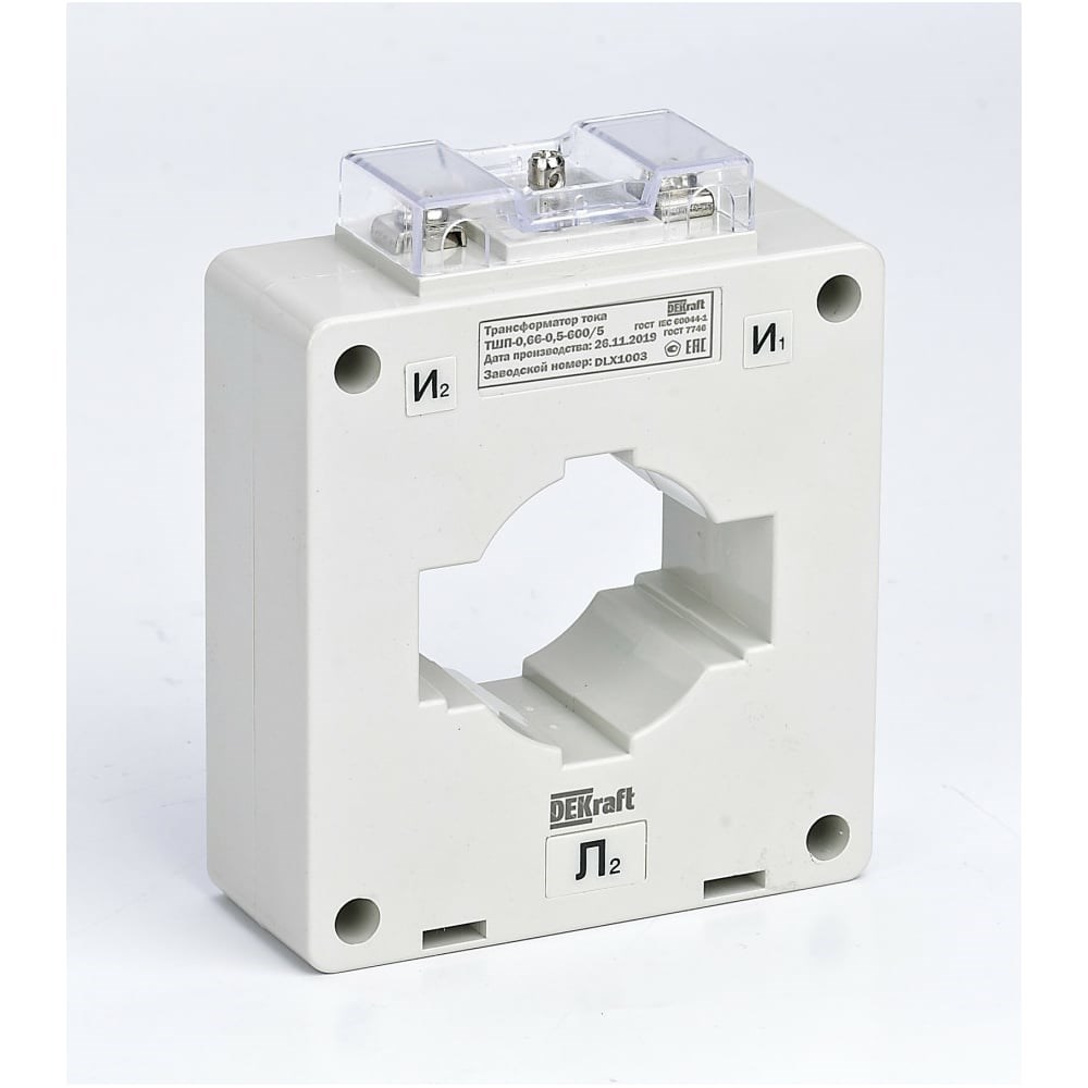 Трансформатор тока DEKraft ТШП-0.66 0.5S 600/5 10В.А D60мм SchE 50113DEK предназначен для контроля и передачи сигналов измерительной информации приборам измерения, защиты, автоматики, сигнализации и управления в электрических цепях переменного тока частотой 50 Гц. Трансформатор тока ТШП-0,66 устанавливается на одну или несколько параллельно включенных шин распределительного устройства, которые служат первичной обмоткой. Корпус трансформатора тока выполнен из легированного поликарбоната. В комплекте имеется пломбировочная крышка, предназначенная для защиты выводов вторичной обмотки от несанкционированного доступа. Крепление трансформатора производится с помощью крепежных металлических пластин или с помощью крепежной металлической шины, которые также входят в комплект поставки. Дополнительные характеристики: Номинальное напряжение Uном, кВ - 0,66. Наибольшее рабочее напряжение Uнр, кВ - 0,72. Номинальная частота, Гц - 50. Класс точности - 0,5S. Номинальный коэффициент безопасности приборов КБном - 5. Климатическое исполнение по ГОСТ 15150-69 - УХЛ3.