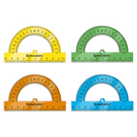 Транспортир пластиковый 10 см, 180 градусов, BRAUBERG, прозрачный, неоновый, ассорти, 210847