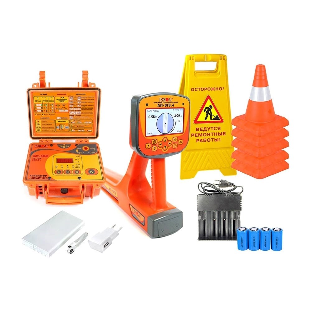 Трассопоисковый комплект предназначен для точного определения местоположения и глубины залегания подземных коммуникаций (силовые и сигнальные кабельные линии, армированные оптоволоконные линии, трубопроводы из электропроводных материалов), поиска неисправностей кабельных линий, а также позволяет в кратчайший срок и с большой надежностью проводить обследование местности перед производством земляных работ и предотвращать повреждение инженерных коммуникаций. В составе комплекта приемник в виде моноблока с цветным ЖК дисплеем, на который выводится изображение трассы и в автоматическом режиме происходит расчет глубины залегания коммуникации до 30 м, а также величины тока в линии. Комплект оснащен новейшим компактным автономным генератором АГ-108 со встроенными элементами питания, дисплеем и встроенной индукционной антенной, для трассировки коммуникации бесконтактным способом. Дополнительные характеристики: Частоты фильтров 50(60) / 100(120) / 512/ 1024 / 8192 / 32768 Гц Диапазон частот Широкая полоса 0,05…7,00 кГц; 7,00…14,00 кГц Диапазон частот Две частоты 1024 / 2048 Гц Динамический диапазон входных сигналов 140 дБ Количество встроенных датчиков 5 Максимальная чувствительность (33 кГц) 5 мкА на расстоянии 1 м Подключаемые внешние датчики ДКИ-117, ДОДК-117, МЭД-127, NR-117M, КИ-105/ХХ, КИ-110/ХХ производства ТЕХНО-АС Управление чувствительностью (усилением сигнала)- полуавтоматическое / ручное (по выбору); - автоматическое для режима Трасса Определение глубины залегания коммуникации- 0,01....30,00 м; - автоматически в режиме Трасса Точность определения глубины залегания ±5 см при глубине до 1 м, ±5% при глубине свыше 1 м Точность определения оси коммуникации ±5 см при глубине до 1 м, ±5% от глубины залегания при глубине свыше 1 м
