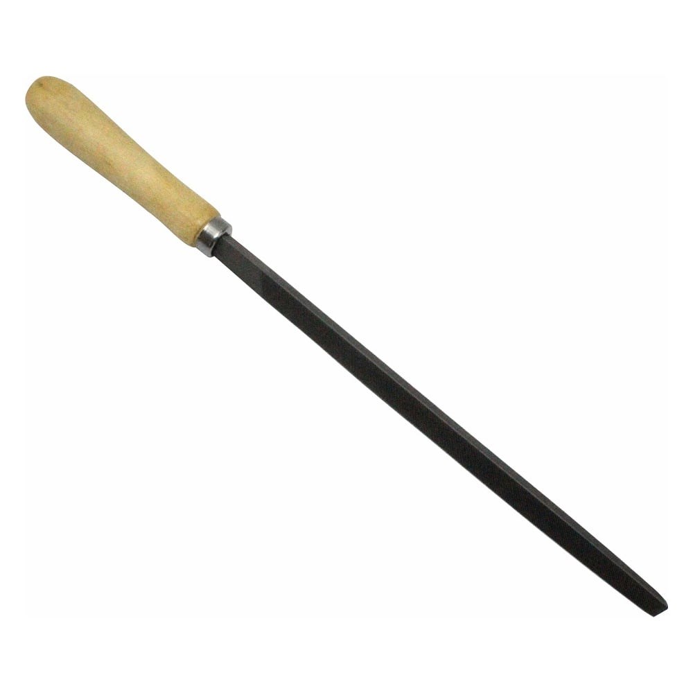 Напильник ON с деревянной ручкой, трехгранный, 150 мм, №2 04-05-150 имеет трехгранную форму. Используется для обработки пазов, отверстий, канавок, заточки пил и другого инструмента. Данный инструмент предназначен для обработки металлических поверхностей, пластмасс, дерева и других твердых материалов. Деревянная рукоятка покрыта бесцветным лаком, защищающим от рассыхания.