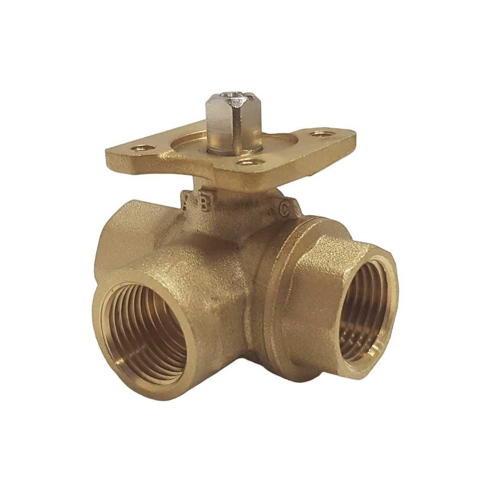 Трехходовой шаровой кран TECHNO 3015С латунный, под привод DN15, G1/2, КVS 6,3 640315-3 предназначен для систем горячего и холодного водоснабжения и водных растворов. Кран отличается надежностью, долгим сроком службы и высокой герметизацией. Эти параметры достигаются благодаря литому корпусу из латуни с применением фторопластовых уплотнений (PTFE), двум уплотнительным кольцам из этиленпропиленового каучука (EPDM). Шар и вал изготовлены из нержавеющей стали. Дополнительные характеристики: Корректировочный диск на входе Максимальное давление - PN20 (~Ру20, 2Мпа, 20Bar, 20атм) Перепад давления - PN3,5 Запорное давление PN13 Рабочая среда - вода, содержание гликоля не более 50 %, пар низкого давления Температура рабочей среды - от -5°C до 120°C. Кронштейн-переходник под привод и сам привод приобретаются отдельно.