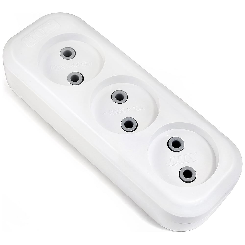 Колодка (розетка удлинителя) LUX У3-0 3-местная, без заземления, 250В 10А 4606400416586