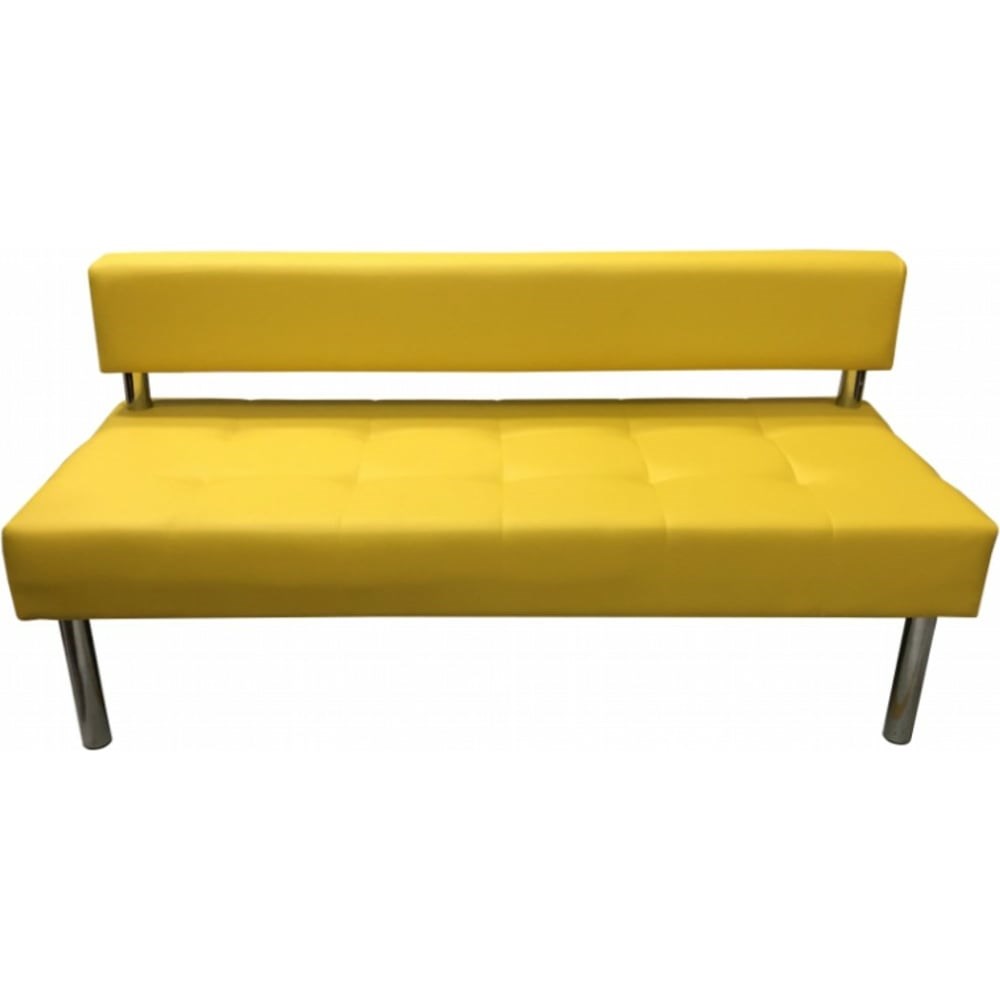 Секция дивана Мягкий офис Сатурн трехместная желтая СТР701ЖЛТ предназначена для офиса или дома. За счет эргономичной формы удобна даже при длительном сидении. Легко и быстро устанавливается, что экономит время и силы. Благодаря высокой прочности секция прослужит долго. Дополнительные технические характеристики: Тип: прямой. Механизм: нет. Ящик для белья: нет. Габариты (в/ш/г): 78x162x63 см. Размер посадочного места (в/ш/г): 45x162x50 см. Наполнитель: высокой плотности ППУ. Ножки: хромированный металл, 30 см.