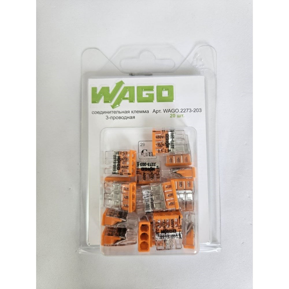Трехпроводная соединительная клемма для быстрого монтажа WAGO 2273-203