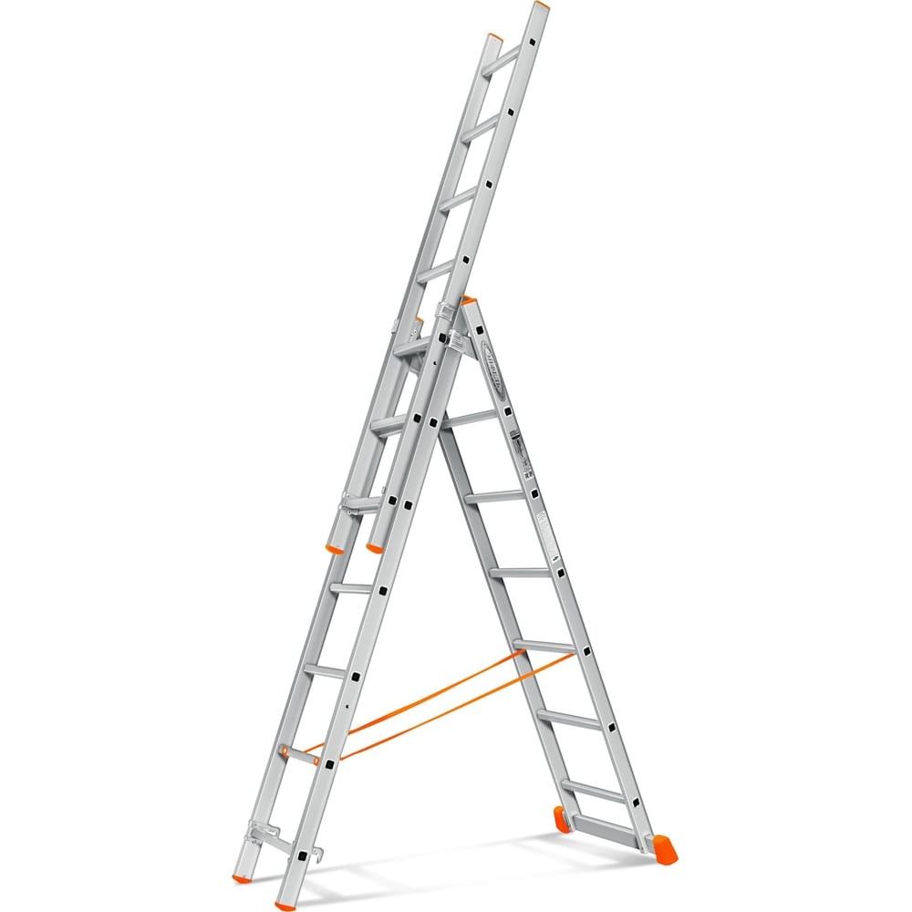 Трехсекционная лестница Эйфель Гранит 3х7 применяется как профессионалами, так и просто домашними мастерами. Отличается высоким качеством и надежностью. Капроновые страховочные ремни предотвращают раздвижение лестницы во время работы. Изделие сделано из алюминия, не подверженного воздействию коррозии. Оксидная пленка способствует повышению срока службы.