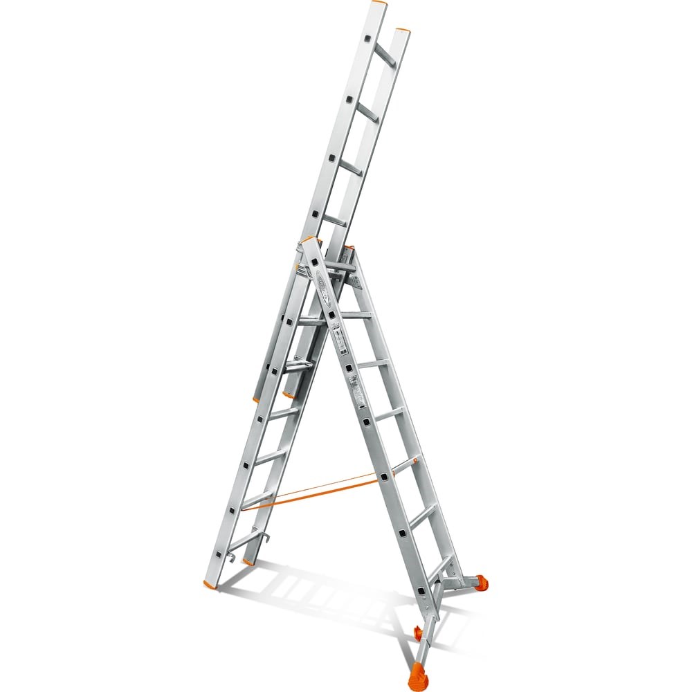 Трехсекционная лестница Эйфель Ювелир 3х7 - приспособление для работы на высоте до 5.2 м. Модель предназначена для бытового и профессионального использования. Имеет раздвижную конструкцию, поэтому отлично подходит для работ на лестничных маршах. Угловая траверса гарантирует повышенную устойчивость и безопасность.