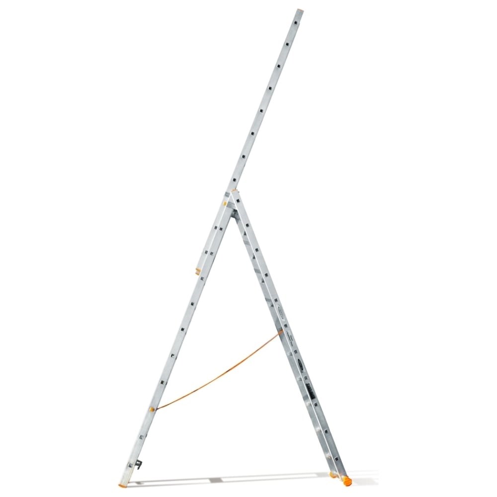 Трехсекционная лестница Эйфель Классик 3х11 отличается разноуровневой установкой. Ступень "Эйфеля" имеет противоскользящее рифление на ребре. Модель используется во время внутренних и наружных строительных и монтажных работ. Сделана из прочного алюминия. Лестница складная - удобна для хранения. Башмаки исключают скольжение по поверхности.