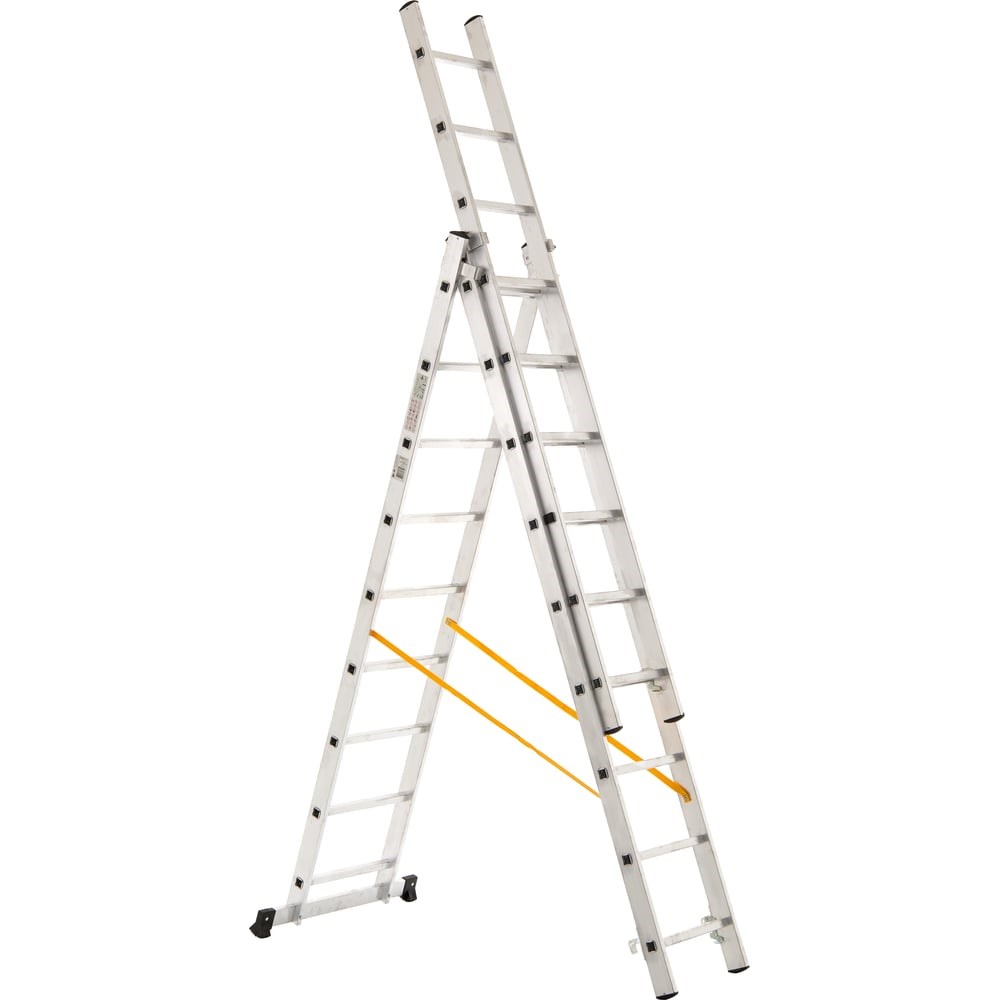 Трехсекционная лестница Inforce 3x9 ЛП-03-09 обладает способностью превращаться в различные модели конструкций. Используется на производствах. Прочность. Качественный профиль позволяет ей выдерживать нагрузку до 150 кг. Универсальность. Модель можно использовать в качестве стремянки, стремянки с выносной консолью, приставной лестницы с одной, двумя или тремя секциями. Отличная устойчивость. Широкая поперечная траверса и антискользящие пластиковые наконечники не дают лестнице смещаться.