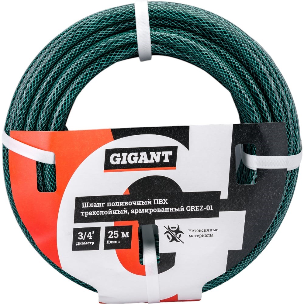 Трёхслойный армированный поливочный шланг Gigant ПВХ 3/4", 25 м GREZ-01 применяется для орошения растений и саженцев на дачных участках. Для удобства использования его можно разрезать на несколько частей необходимой длины. Шланг выполнен из ПВХ, поэтому он отличается гибкостью и эластичностью при плюсовой температуре. Армированный слой из синтетической нити обеспечивает долговечность и прочность. Шланг защищен от негативного воздействия ультрафиолета.