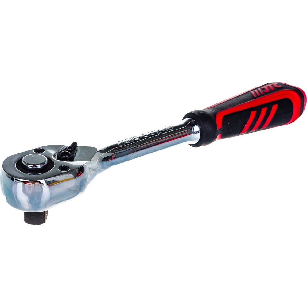 Трещотка 1/2" 72-зубцовая JTC 5024B с прорезиненной рукояткой надежно лежит в руке во время работы. Используется для монтажа резьбовых соединений. Имеет механизм быстрого сброса насадок. Храповый механизм с 72 зубцами передает большой крутящий момент, то есть способствует легкости хода. Угол поворота трещотки - 5 градусов. Присоединительный квадрат - 1/2". Габаритные размеры: 260х40х40 мм.