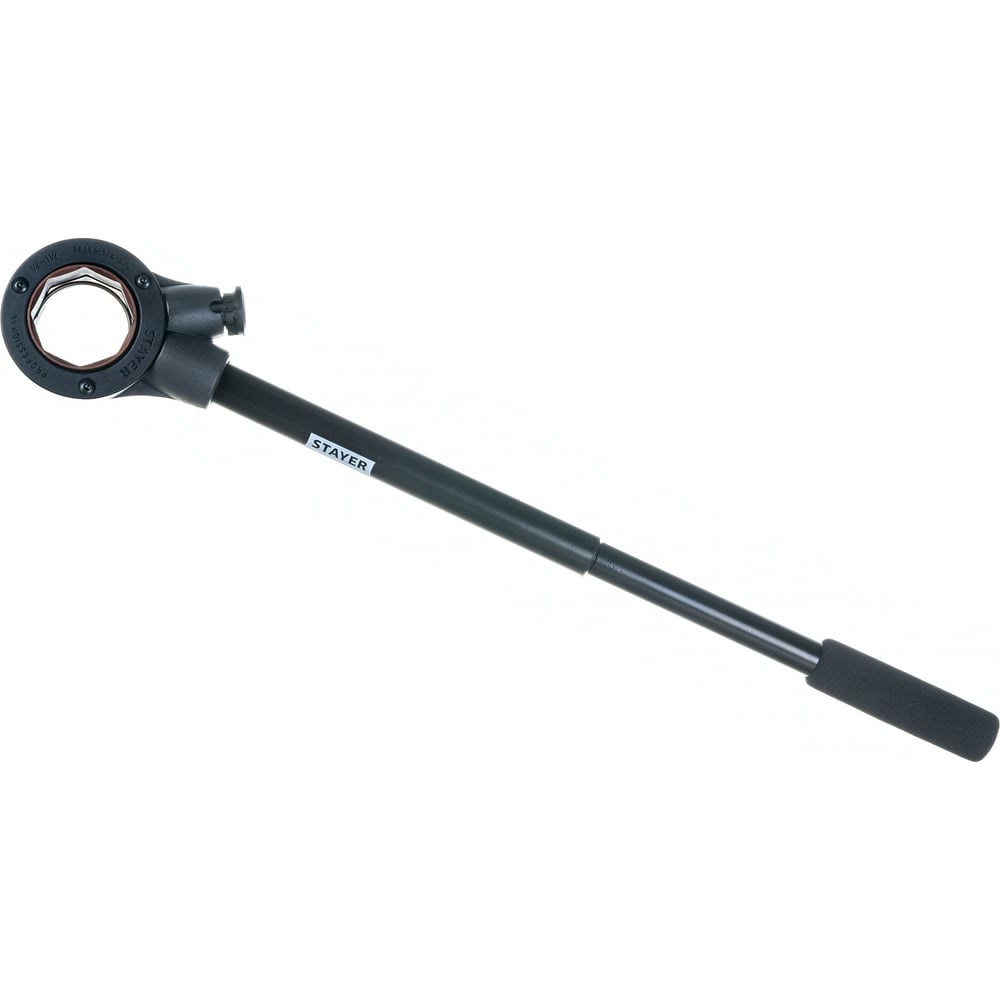 Трещотка для клуппов STAYER 28265-1/4-5/4 используется в слесарно-монтажных работах. Работает совместно с клуппами для нарезания резьбы на трубах из металла. Корпус изготовлен из инструментальной стали. Реверс и удобная рукоять позволяют усилить захват. Двусоставная рукоять имеет общую длину 620мм и разбирается для компактного хранения.
