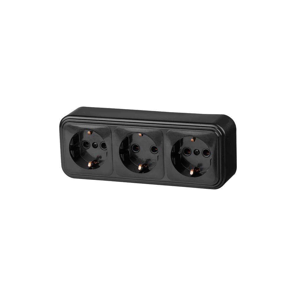 Розетка ЮПИТЕР тройная наружная с заземлением Стандарт черная JP7412-10