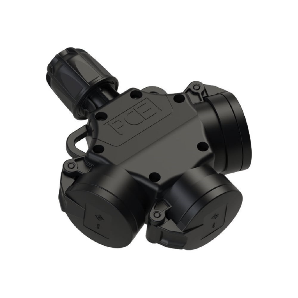 Тройник PCE из твердой резины 16A 250V 2P+E IP44 с подпружиненными крышками и индикацией 253642-sxs совместим с разъемами стандарта СЕЕ в том числе таких производителей Mennekes, Bals, PCE, ИЕК и других производителей. Midnight Series изготовлены из полиамида 6, стойкого к химическим соединениям имеют высокую надежность и длительный срок эксплуатации. Силовые промышленные разъемы Midnight Series PCE предназначены для соединения электрических цепей с нагрузкой 16А и напряжением 250 В.