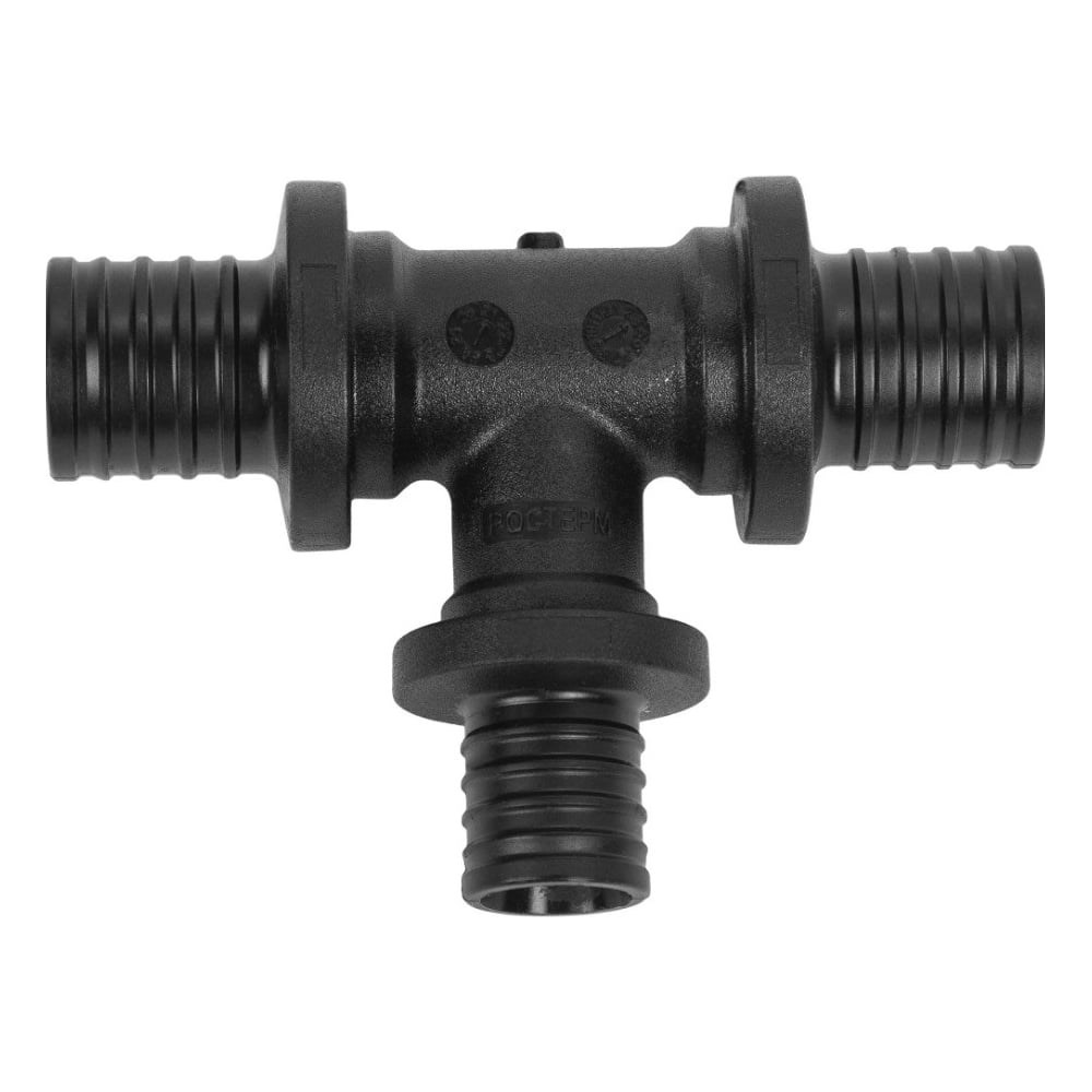 Тройник РОСТерм 25х20х25 PPSU переходной, используется для создания дополнительных соединений под прямым углом. Тройник имеет три отвода для стыковки двух труб из сшитого полиэтилена диаметром 25 мм и одной диаметром 20 мм, совместно с напрессовочными гильзами PVDF соответствующего размера. Используется в аксиальной системе для соединения полимерных труб РЕ-Х и PE-RT. Для производства фитингов используется материал полифенилсульфон (PPSU). Данный материал сохраняет превосходные механические, электрические и тепловые характеристики при длительном воздействии высоких температур. Преимущества: • Универсальность, предназначены для использования в системах холодного (в т.ч. питьевого) и горячего водоснабжения, радиаторного и напольного отопления. • Фитинги неразъёмные, подходят для скрытого монтажа, в том числе для заливки в стяжку. • Простота и скорость монтажа. Монтаж фитингов производится стандартным инструментом для аксиальных систем. • Отсутствие резиновых уплотнительных колец, уплотнителем выступает материал самой трубы. Герметичность соединения достигается прижатием стенки трубы к штуцеру фитинга надвижной гильзой. • Не подвержены коррозии и минеральным отложениям, устойчивы к зарастанию. • Современная альтернатива фитингам из латуни. • Срок службы данных изделий до 50 лет.