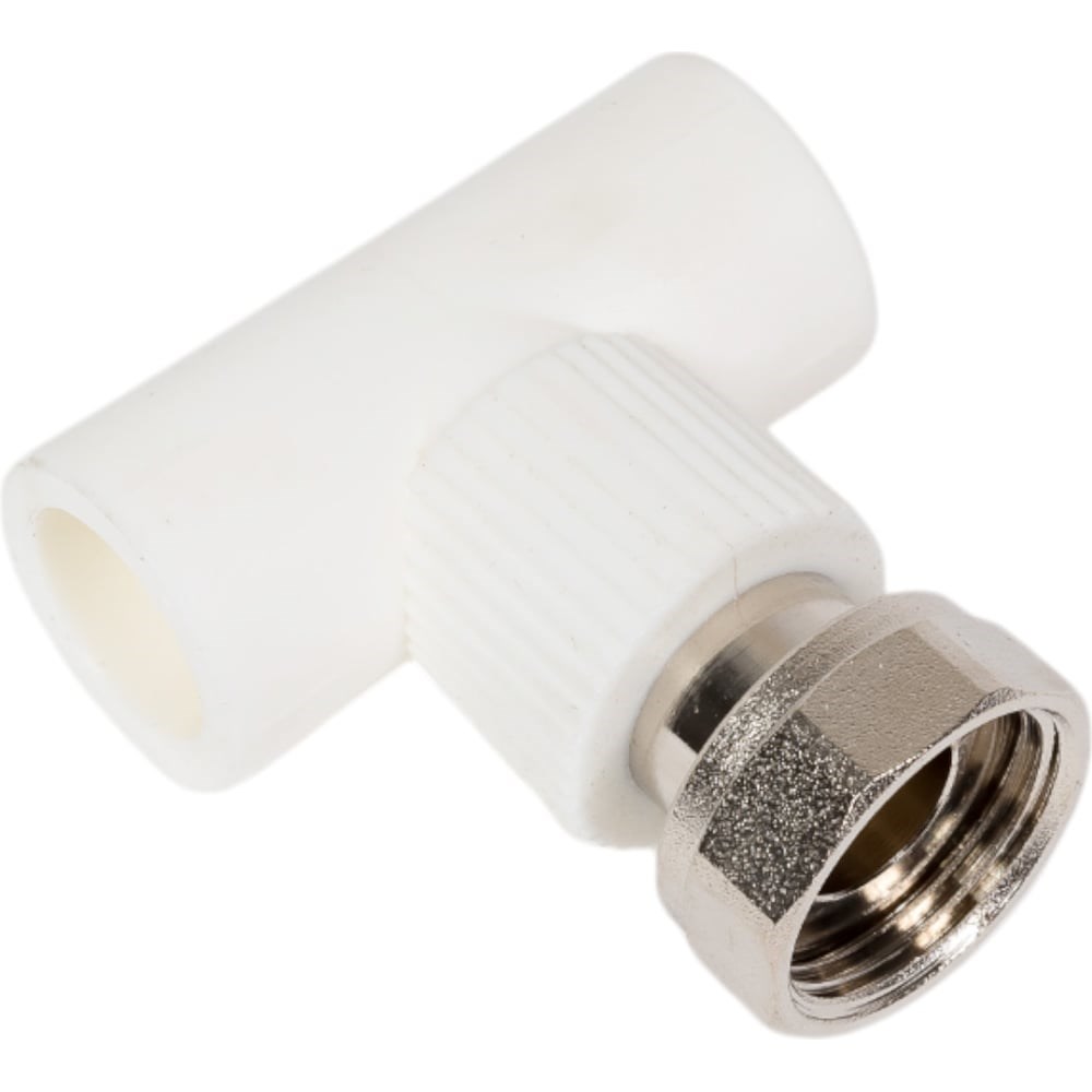 Тройник комбинированный полипропиленовый TEBO technics с накидной гайкой. Полипропиленовые трубы и фитинги TEBO technics применяются в системах хозяйственно-питьевого назначения, горячего водоснабжения, отопления, а также в качестве технологических трубопроводов, транспортирующих жидкости и газы, не агрессивные к материалам трубы и фитингов. Изготовлены из современного материала — Polypropylene Random Copolymer («Рандом сополимер» PP-R тип 3). Трубы и фитинги TEBO technics соответствуют нормам стандартов ГОСТ 32415-2013, DIN 8077/8078. Комбинированные полипропиленовые фитинги имеют интегрированную латунную резьбовую вставку (закладную Латунь марки CW617N) с никелевым покрытием и служат для перехода на резьбовое трубное соединение. Специально созданные конструктивные элементы — метки на поверхности фитинга позволяют наглядно определить длину сварочного пояска раструба фитинга. Наличие таких меток упрощает процесс монтажа инженерных систем на основе PP-R труб фитингов TEBO technics. Продольные метки, нанесенные на поверхность фитингов, позволяют соосно сварить трубы и фитинги.