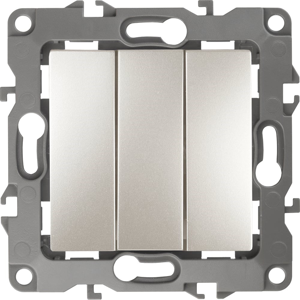 Тройной выключатель ЭРА 12-1107-15 10АХ-250В, IP20, перламутр Б0019302 сделан из поликарбоната и оснащён винтовыми уникальными клеммами ЭКСПЕРТ для надёжной фиксации жил кабеля в механизме. Парные клеммы обеспечивают соединение шлейфом. Монтаж в подрозетник производится и на лапки, и на винты. Рамка приобретается отдельно.