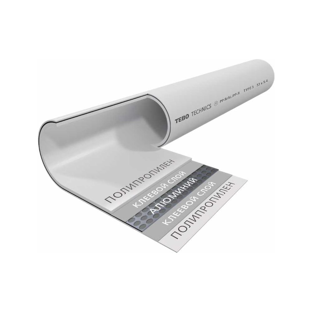 Полипропиленовые трубы TEBO Master pipe применяются в системах хозяйственно-питьевого назначения, горячего водоснабжения, отопления, а также в качестве технологических трубопроводов, транспортирующих жидкости и газы, не агрессивные к материалам трубы и фитингов. Наружный и внутренний слой трубы TEBO Master pipe выполнены из полипропилена PP-R тип 3. Между этими слоями полипропилена находится слой алюминиевой фольги, соединённый клеем со слоями полипропилена. Алюминиевый слой не имеет сварного шва. Назначение алюминиевого слоя – снижение температурных деформаций и защита от кислородной диффузии через стенки трубы, что особенно важно для систем отопления. Трубы и фитинги TEBO technics соответствуют нормам стандартов ГОСТ 32415-2013, DIN 8077/8078. Перед выполнением сварки фитинга и трубы необходимо выполнить торцевание трубы - средний металлический слой стенки трубы удаляется на глубину 2-3 мм, что обеспечивает сплавление наружного и внутреннего слоев стенки трубы, и предотвращает расслаивание в процессе эксплуатации.