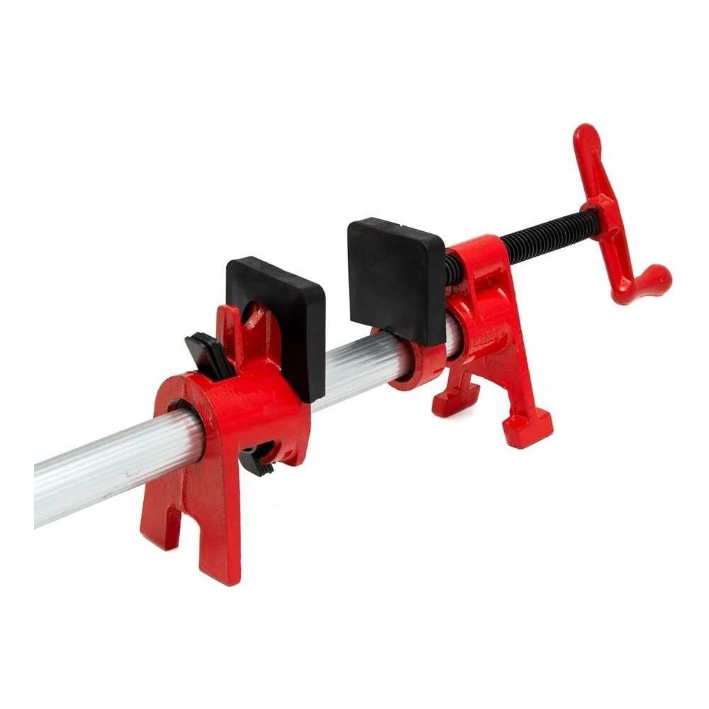 Струбцина трубная на ножках 3/4" VIRA. У трубной струбцины отсутствует внутренний стержень, благодаря чему увеличивается раскрытие струбцины и расширяются возможности ее применения: от склейки мебели до монтажа деталей автомобиля. Вместо внутреннего стержня используется стальная водогазопроводная труба диаметром 26,8 мм. Благодаря этому размер деталей для фиксации ограничивается только длиной трубы, которую вы устанавливаете в струбцину. Затяжной Т-образный винт уменьшает усилие вращения и обеспечивает быструю надежную затяжку заготовок. Струбцина выдерживает большие нагрузки и дает возможность удерживать большое давление. Резиновые прокладки на губках предохраняют предмет от вмятин, а благодаря наличию в конструкции ножек струбцина более устойчивая. Характеристики:Диаметр трубы (мм): 26.8Резьба ("): 3/4Шаг резьбы: 1.81Материал: сталь CSОпорные площадки: 40х40Тип зажима: винтовойПрименение: по дереву, металлу, пластикуОсобенность: на ножкаВнимание! Труба не входит в комплект!