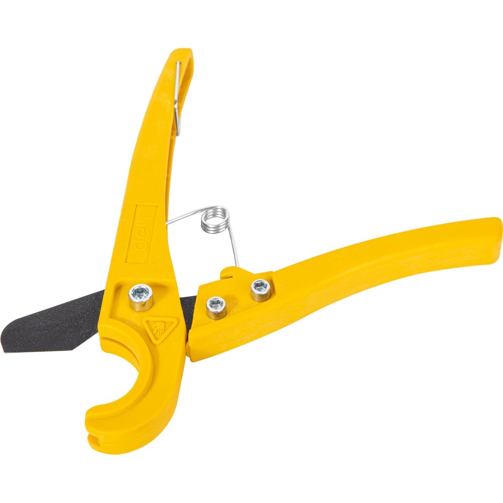 Труборез для пластиковых труб применяется для резки труб из ПВХ диаметром до 33 мм. Труборез обладает высококачественной режущей кромкой из высокопрочной стали 65Mn, что обеспечивает точный и качественный рез труб без дополнительной обработки. Лезвие с тефлоновым покрытием, что исключает возникновение коррозии.