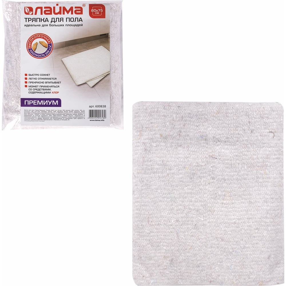 Тряпка для мытья пола ЛАЙМА 60х75 см 600838 идеально подходит для уборки больших площадей. Может применяться с моющими средствами с хлором. Материал состоит на 50% из вискозы, на 10% из полиэстера и на 40% из хлопка, благодаря чему обладает высокой прочностью и износоустойчивостью. Плотность 200 г/кв.м. Отлично впитывает воду, прекрасно отжимается и быстро сохнет.
