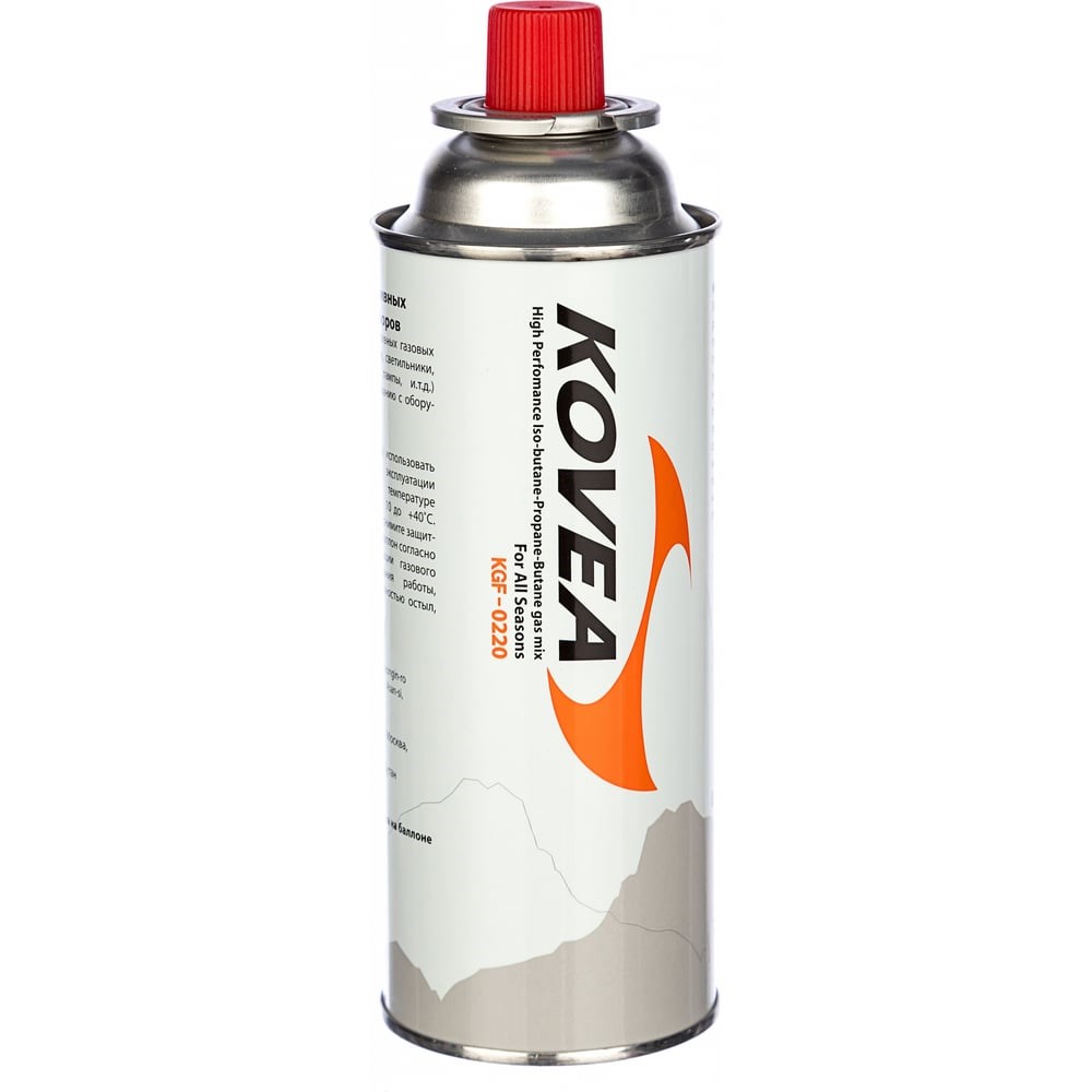 Баллон KOVEA KOV-KGF-0220 предназначен для газовых горелок и паяльных ламп. Наполнен высокопроизводительной газовой смесью составом: изо-бутан, пропан, бутан. Вес газа в баллоне — 220 г. Картридж имеет цанговое соединение. Баллон допускает многократное присоединение/отсоединение к оборудованию.