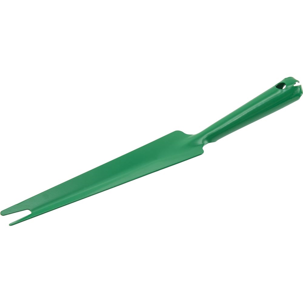 Применяется для пересадки растений, высадки рассады, внесения удобрений в почву. Изготовлен из конструкционной углеродистой стали обыкновенного качества. Порошковое покрытие защищает рабочую часть инструмента от коррозии. Деревянная рукоятка двойной шлифовки делает работу комфортной. Толщина полотна - 1 мм
