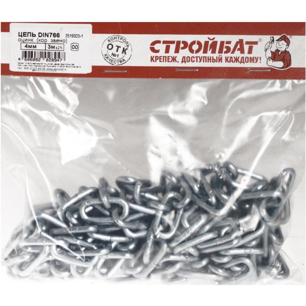 Цепь Стройбат DIN 766, короткое звено, 4 мм, белый цинк, 3 м 261690