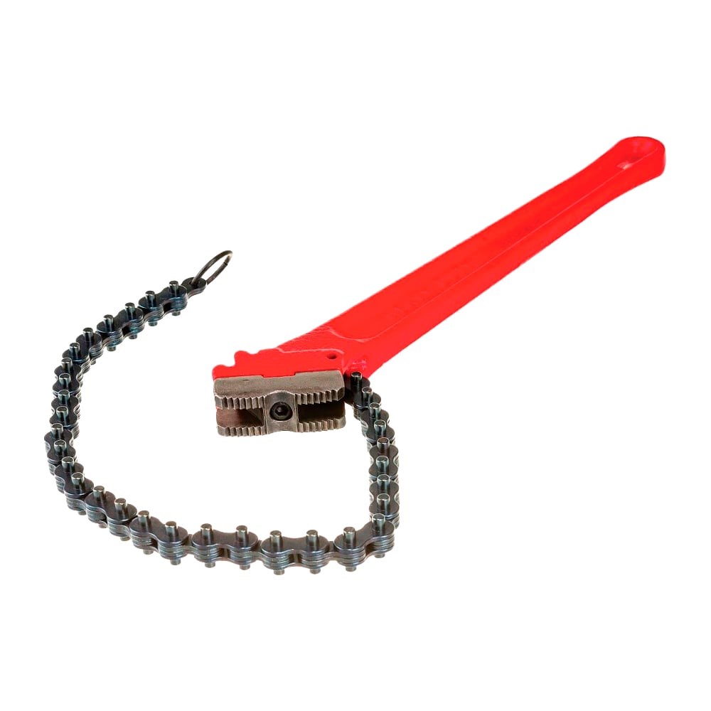 Цепной ключ для больших нагрузок VOLL С36 cостоит из рукоятки, прикрепленной к ней щеки и цепи. На щеку нанесены специальные насечки-зубья, которые плотно обхватывают трубу и не позволяют ей прокручиваться, являются опорой для рукоятки. Цепь обхватывает трубу по всему радиусу, за счет этого усилие распределяется равномерно по поверхности трубы. Отличительные особенности: Прочная конструкция способна выдерживать большие нагрузки. Кованые губки и рукоятка, губки заменяются. Прочная цепь из спец. стали с улучшенной термообработкой: подгоняется под трубы всех указанных диаметров. Зубья с двух сторон для работы по типу трещотки: правый и левый ход. Для труб диаметром до 185 мм (7.1/2")