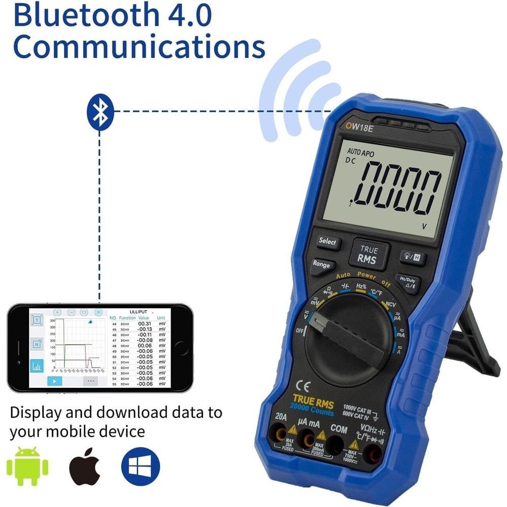 Повышенная точность измерений Разрядность дисплея: 20000 отсчетов Истинное среднеквадратичное измерение напряжения и тока True RMS Bluetooth 4.0 передача данных Автономная регистрация данных (168 часов, 10000 замеров) Построение графика данных для наглядного анализа измерений Поддержка Android, iOS, Windows Емкость конденсаторов: 1пФ … 20 000 мкФ, базовая погрешность ±3.0% Постоянное напряжение: 10 мкВ … 1000 В, базовая погрешность ±0.1% Переменное напряжение: 10 мкВ … 750 В, базовая погрешность ±0.5% Постоянный ток: 0,1 мкА … 20 А, базовая погрешность ±0.5% Переменный ток: 0,1 мкА … 20 А, базовая погрешность ±0.8% Сопротивление: 0,1 Ом … 200 МОм, базовая погрешность ±0.3% Температура: -50°С … 400°С, погрешность ±(1.0%+3°С) Частота: 0,01 Гц … 20 МГц, погрешность ±0.1% Коэффициент заполнения (1/скважность): 0,1% … 99,9% Входной импеданс: ~ 10 МОм Режим относительных измерений Диодный тест Тест проводимости Фиксация показаний (DATA HOLD) Подсветка дисплея Фонарик Индикатор разряженной батареи Бесконтактный индикатор переменного напряжения (NCV) Режим автоотключения Противоударный холстер Диапазон рабочих температур: 0°С ... +40°С Диапазон температур хранения: -10°С ... +60°С Питание: батарея 1 шт. х 9 В, тип 6F22 Сертификаты: EAC, CE