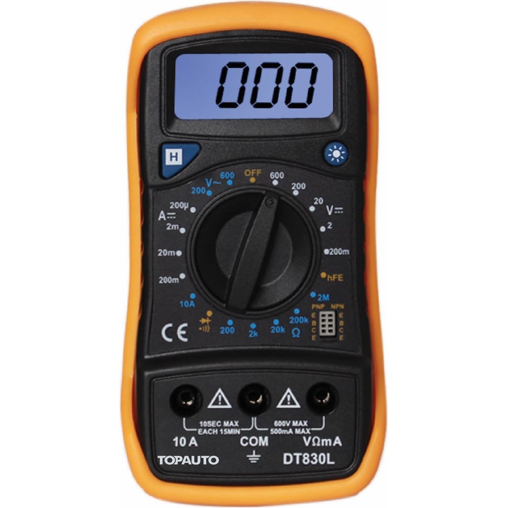 Компактный цифровой мультиметр (мультитестер) "Топ Авто" предназначен прежде всего для звуковой прозвонки цепи - электрики автомобиля, а также для измерения напряжения и тока, для проверки усилителей, диодов и транзисторов. Прибор оснащен ЖК-дисплеем с подсветкой, на который выводятся все необходимые показатели. Также на дисплее этого мультиметра предусмотрено наличие индикации заряда батареи. Защита от перегрузки мультиметра на всех пределах измерений. Защитный чехол обеспечивает удобное положение прибора в ладони, а также позволяет установить его под углом к поверхности и сводит к минимуму риск механического повреждения прибора. Метод измерений - АЦП двойного интегрирования с автокоррекцией нуля, автоопределением полярности и индикацией перегрузки.Размеры устройства 14*3*7 см.