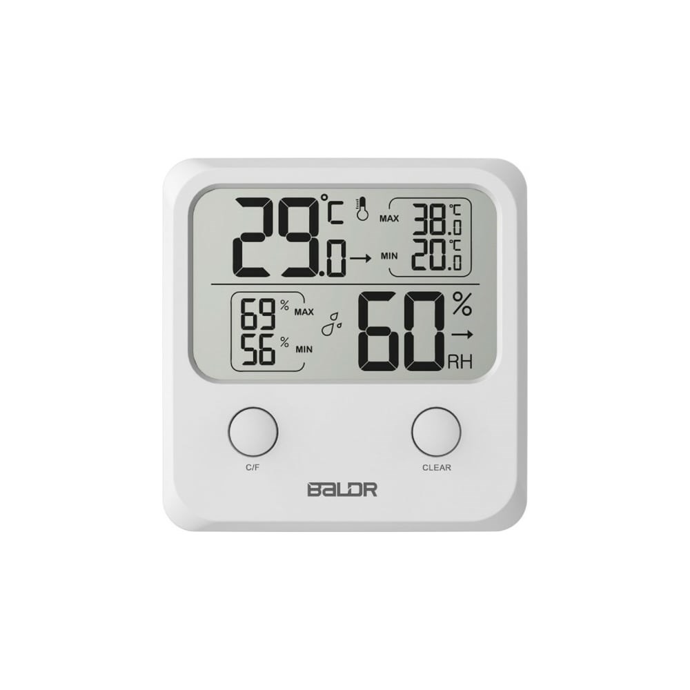 Цифровой термогигрометр BALDR B0335TH имеет яркую белую панель с четким ЖК-дисплеем, который легко читается даже с большого расстояния. Высокая точность и аутентичность контроля температуры: диапазон температур: от -10°C до 50°C (от 14°F до 122°F), измерение быстрого отклика каждые 30 секунд для обеспечения более точных показаний. Мониторинг влажности в помещении: диапазон относительной влажности: от 20% до 95% что идеально подходит для теплиц, детских комнат. Стрелка трендов температуры и влажности: стрелка изменит направление, чтобы показать тренд температуры и влажности. Универсальное и совершенное устройство: этот небольшой гигротермометр может стоять на столе, висеть на стене или крепиться на магните, в зависимости от вашего удобства.