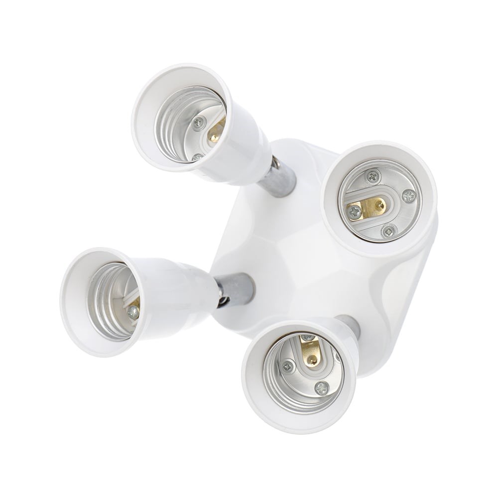Цокольный разветвитель E27 на 4 гнезда предназначен для подключения нескольких ламп с цоколем E27 одновременно к одному источнику. Товар распространен как в сфере строительства, так и при монтажных работах и в быту.Источник питания: 220-240 В AC Частота питания: 50/60 Гц Номинальный ток: 4 А Материал: пластик PBT Цвет: белый