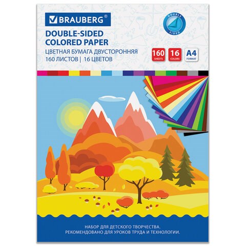 160 листов двусторонней бумаги в 16 разнообразных оттенках надолго обеспечат ребенка всем необходимым для творческого процесса. Цветная бумага имеет плотность 80 г/м2, поэтому легко режется, клеится и сгибается. Благодаря цветному срезу поделки будут выглядеть аккуратными и завершенными.