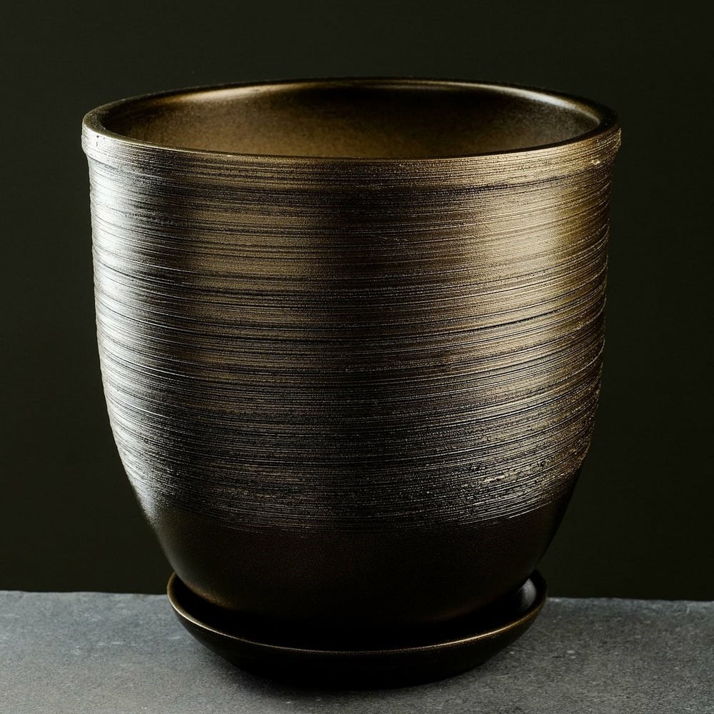 Цветочный горшок с поддоном СИМАЛЕНД Черное золото 5 л 6912627 применяется для выращивания садовых растений. Изготовлен из керамики, благодаря чему отличается натуральностью и пористой структурой, которая позволяет испаряться влаге, но при этом прекрасно сохраняет тепло. Поддон обеспечивает защиту поверхностей от переливания излишек жидкости. Керамический горшок станет прекрасным украшением интерьера сада или дачи.