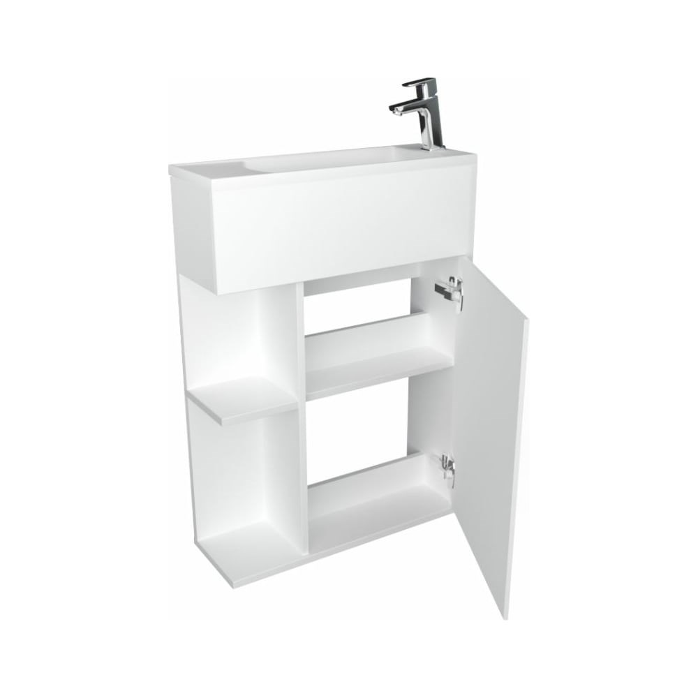 Тумба с раковиной в ванную 1Marka Stretto 50 см подвесная цвет Белый глянец У94716: современный стиль и функциональность Тумба для ванной Stretto 50П 1д с раковиной в современном стиле станет изысканным дополнением для гостевого санузла или маленькой ванной комнаты. Корпус и фасады выполнены из влагостойкого МДФ, облицованы глянцевой ПВХ пленкой белого цвета. Минималистичный дизайн без ручек обеспечивает удобство и простоту использования. Уникальная узкая раковина из полимерной керамики (всего 21 см) обеспечивает экономию пространства и одновременно сохраняет глубину для предотвращения расплескивания воды. Раковина обладает эстетическим преимуществом в виде утонченных краев и малого радиуса закруглений. Боковой борт и безопасные грани по периметру обеспечивают правильное сток воды. Материал раковины гипоаллергенный. Тумба оснащена петлями с доводчиками, что обеспечивает плавное и бесшумное закрывание дверцы. В комплекте с тумбой идет телескопический сифон, гофрированная трубка, выпуск и донный клапан. Тумба для ванной Stretto 50П 1д не требует сборки, что экономит место, время и бюджет. Производитель предоставляет 2 года гарантии на товар. Размеры тумбы составляют 50х21х75 см, что делает ее компактным решением для любого интерьера.