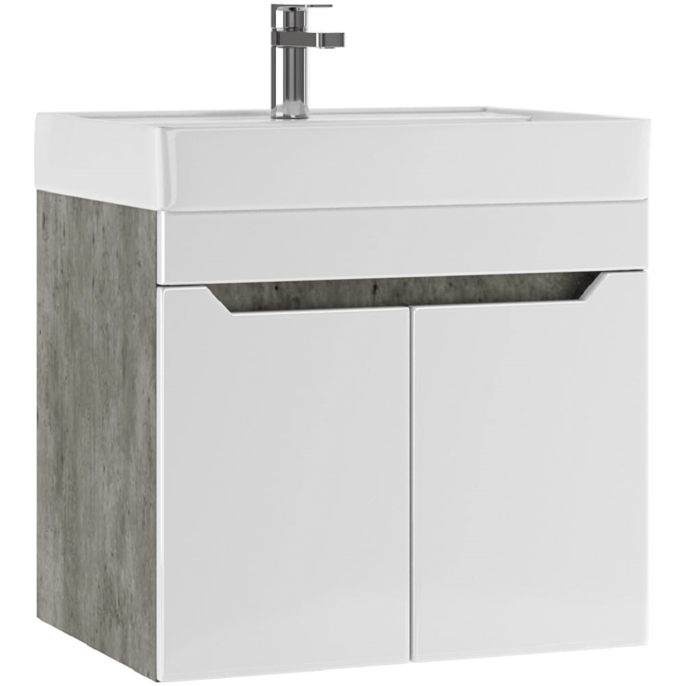 Тумба подвесная под умывальник "Енисей 60" Мечта без ящика Бетон АЙСБЕРГ является идеальным решением для вашей ванной комнаты, создавая ощущение простора благодаря особой конструкции. Мебель выполнена из ЛДСП и МДФ с пленкой ПВХ, что гарантирует долгий срок службы. «Белый» цвет и цвет «Бетон» придают данной тумбе привлекательность. Тумбочка под раковину в ванную обладает уникальной особенностью — она поставляется в собранном виде. Это экономит ваше время и силы, ведь вся необходимая сборка уже выполнена профессионалами. Подвесная модель предоставляет больше пространства на полу, а также облегчает уборку. Распашные дверки с доводчиками делают её использование более комфортным: она открывается плавно и бесшумно, исключая резкие звуки закрытия. Отсутствие ящика позволяет максимально использовать внутреннее пространство для хранения различных принадлежностей. Такая конструкция идеально подходит для компактных помещений или минималистичных интерьеров, где важна каждая деталь. При этом изделие сохраняет свою функциональность — полка под раковину в ванной легко выдерживает повседневное использование. Мебель в ванную комнату часто подвергается воздействию влаги, поэтому качественные материалы и глянцевое покрытие играют важнейшую роль в обеспечении долговечности изделия. Для ванной комнаты мебель должна быть устойчивой к таким условиям эксплуатации, и данная модель превосходит ожидания по всем параметрам.
