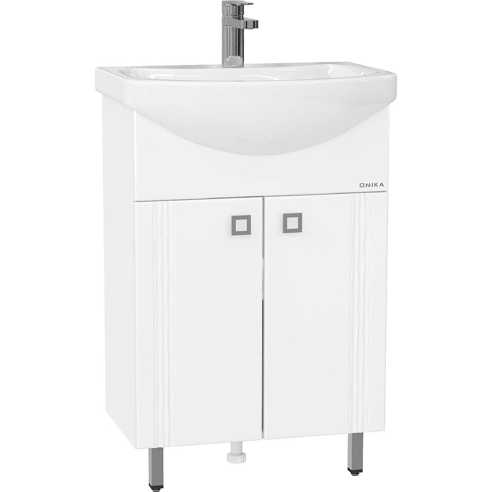 Тумба с раковиной Onika ЛИГА 55.11 105554 идеально подойдет для небольших помещений и привнесет в интерьер комнаты тепло и уют. Изюминка дизайна тумбы - сложный декор фасада и оригинальные квадратные ручки. За распашными дверцами с системой плавного закрывания расположено вместительное отделение для хранения, разделенное на две части горизонтальной полочкой, которое вместит все необходимые принадлежности. Корпус тумбы выполнен из ЛДСП, фасад - из МДФ в пленке, устойчивых к механическим воздействиям, перепадам температур и высокой влажности. Две хромированных ручки и три ножки (2 декоративных хромированных и 1 пластиковая) идут в комплекте с тумбой.