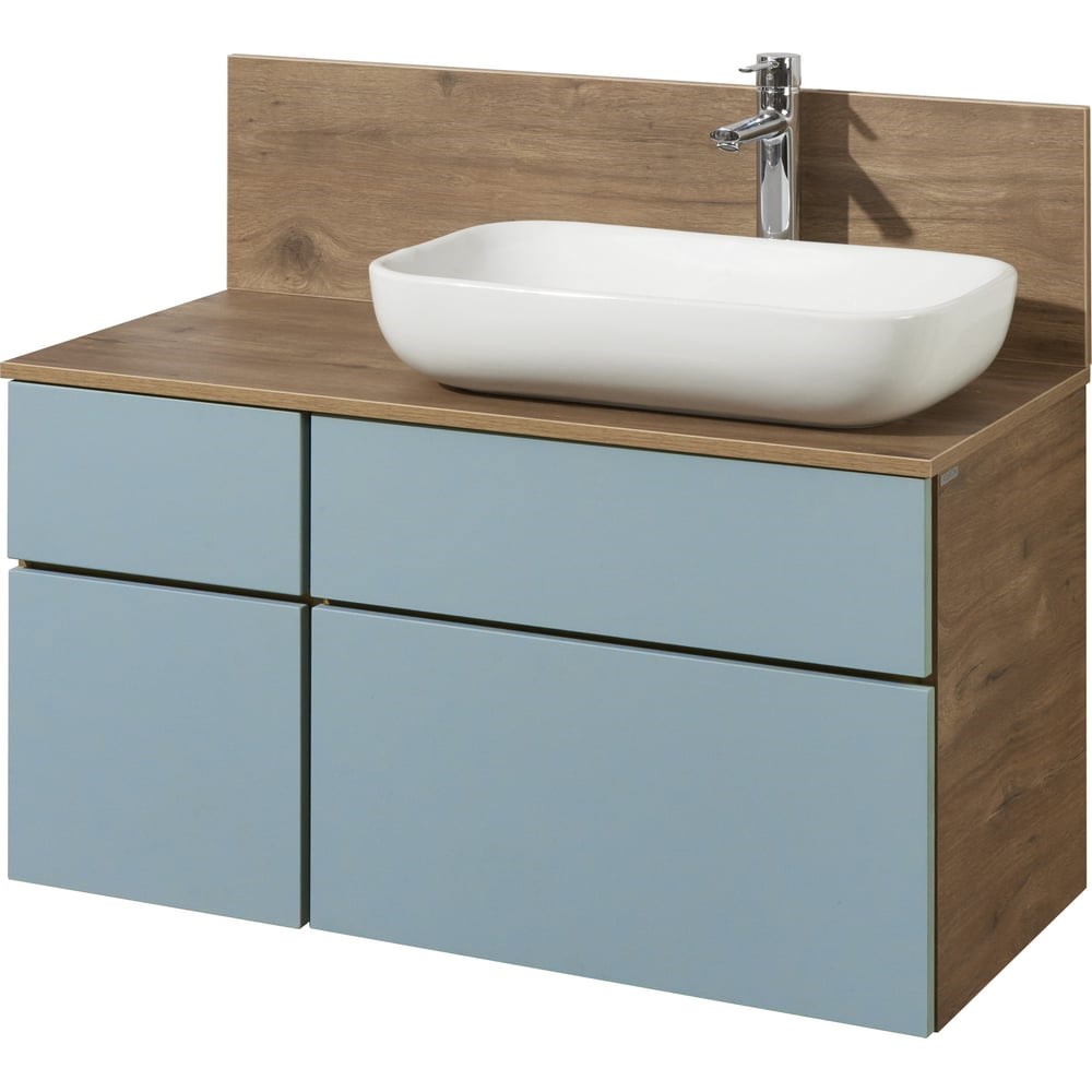 Тумба под раковину AQUATON Мишель 100 — дуб рустикальный / фьорд (1A244101MIX30)Эта тумба — для тех, кто любит яркие решения и человеческий комфорт. Коллекция Мишель создана, чтобы дарить настроение: глубокий оттенок фасада в пленке «фьорд» в сочетании с тёплым декором дуба рустикального делает интерьер живым и уютным с первого взгляда.Коротко о главномШирина 100 см — просторная и вместительная модель.Комбинация фасада «фьорд» и корпуса «дуб рустикальный» — стиль и натуральность в одном.Практичная система хранения: левый блок — небольшой выдвижной ящик и отделение со створкой; правый блок — два больших ящика полного выдвижения с доводчиками.Все ящики/фасады оснащены системой push-to-open — лёгкое прикосновение, и они открываются.Дизайн и отделкаФасады в премиальной пленке «фьорд» дают насыщенный, глубокий цвет без бликов, корпус декорирован под натуральный дуб рустикальный — фактура и тёплые тона создают уютный контраст. Модель смотрится эффектно как в минималистичной, так и в более тёплой, интерьерной гамме.