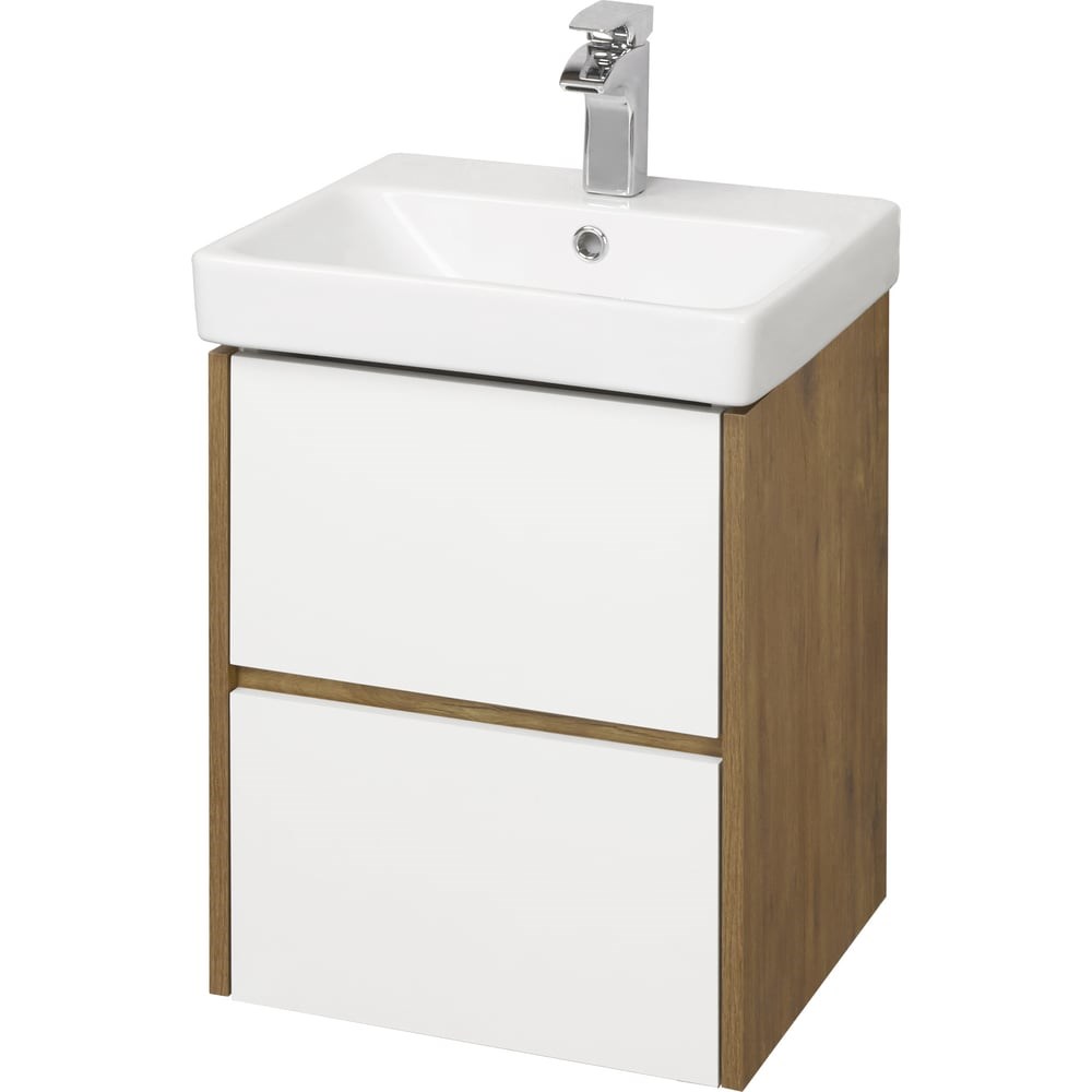 Тумба под раковину Акватон Сканди 45 белая, дуб рустикальный 1A251601SDZ90 выполнена в популярном минималистичном скандинавском стиле. Корпус тумбы выполнен из влагостойкой ЛДСП в декоре натурального дерева, а фасады в белой глянцевой покраске. Конструктивно тумба состоит из 2 вместительных ящиков, установленных на направляющие с интегрированной системой push-to-open для комфортного использования. На тумбе нет выступающих деталей и фурнитуры, открытие ящиков реализовано нажатием на фасад. Тумба комплектуется белоснежной раковиной Адриана от бренда Santek (приобретается отдельно).
