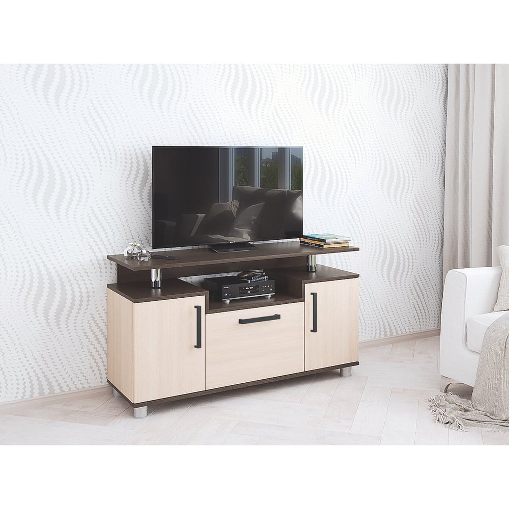 Тумба под телевизор Арника 003 С в цвете венге/дуб молочный представляет собой функциональное и стильное решение для интерьера. Изготовленная из ЛДСП с лаковым покрытием, она обеспечивает долговечность и легкость в уходе. Конструкция тумбы включает три полки и три ящика, что позволяет удобно разместить все необходимые устройства и аксессуары. Размеры 1200x660x380 мм делают ее подходящей для большинства современных телевизоров, а отсутствие колесиков обеспечивает устойчивость. Вес изделия составляет 42,4 кг, что свидетельствует о его прочности. Тумба гармонично сочетает в себе практичность и современный дизайн, что делает ее отличным выбором для дома.