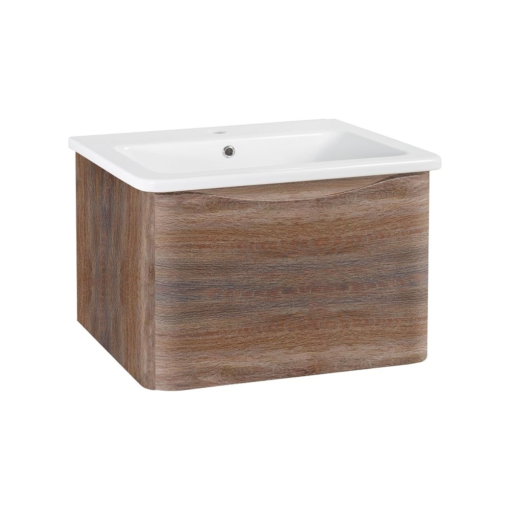 Внимание, раковина приобретается отдельно. Тумба с раковиной в ванную RUNO ТОСКАНА (подвесная) - выполнена в ультрасовременном дизайне в цвете темное дерево. Тумба под раковину отличается изысканным дизайном, скруглённые углы тумбы, древесная текстура фасада, врезная ручка – придают мебели необычный и незабываемый внешний вид. Тумба в ванную оснащена выдвижным ящиком на шариковых направляющих, с системой плавного закрывания. Тумба под раковину ТОСКАНА гармонично впишется в любой интерьер ванной комнаты. Мебель для ванной комнаты RUNO - красота и практичность в мелочах!