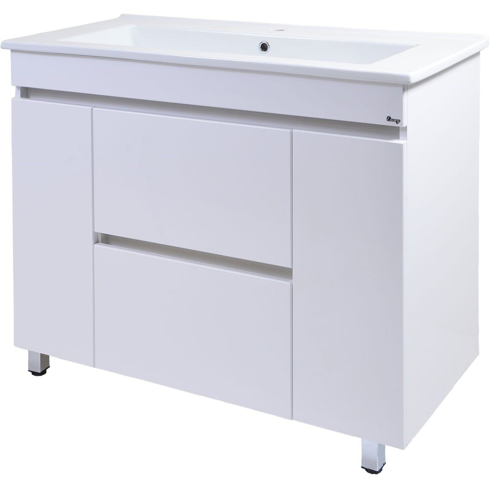 ВНИМАНИЕ!!! РАКОВИНА В КОМПЛЕКТ НЕ ВХОДИТ И ПРИОБРЕТАЕТСЯ ОТДЕЛЬНО. Тумба Emmy ДЖЕРСИ 105 см с 2 ящиками и 2 шкафчиками под умывальник Оскар 105 (Kirovit) . Представляет собой напольную тумбу с 2 выдвижными ящиками по середине и 2 шкафчиками расположенными по бокам. Корпус и фасад изготовлен из качественного и высокоплотного МДФ с пленкой ПВХ белого цвета. Ящики оснащены направляющими скрытого монтажа с доводчиками. Внутри шкафчиков по 1 полочке из ЛДСП. Поставляется в собранном виде, за исключением ножек, которые необходимо установить самостоятельно. Российское производство. Дополнить комплект можно так-же изделиями из коллекции ДЖЕРСИ.