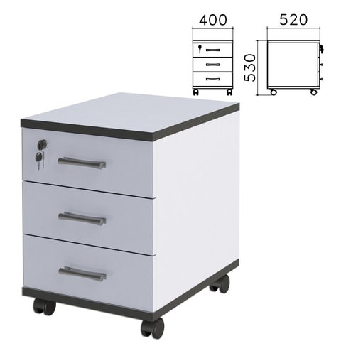 Тумба подкатная "Монолит", 400х520х530 мм, 3 ящика, замок, цвет серый, ТМ25.11