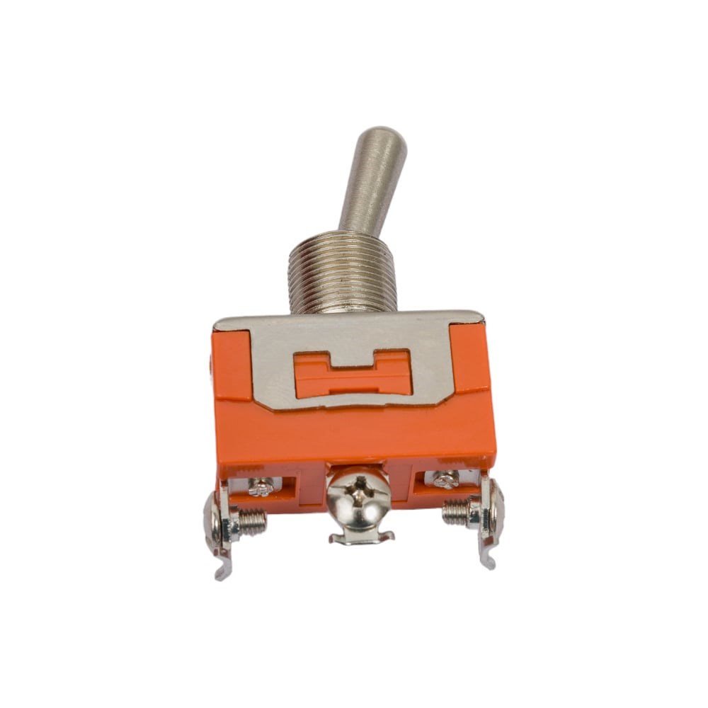 Тумблер 250V 15А (3c) ON-OFF-ON однополюсный (KN-103) предназначен для коммутации электрических цепей переменного тока напряжением до 250В. Такая разновидность переключателей применяется на лицевых панелях в качестве комплектующих изделий различного электрооборудования (в измерительных приборах, блоках питания, электроустановках на различных производствах, легковых и грузовых автомобилях, поездах и многих других местах). Отличительной особенностью тумблера является перекидной переключатель, принцип действия которого основан на его перемещении в одну из позиций. Для переключения в нужное положение требуется приложить некоторые усилия. Монтаж осуществляется без применения винтов на плоских панелях толщиной от 0.8мм до 4мм. Подключение контактов осуществляется с помощью винтов.